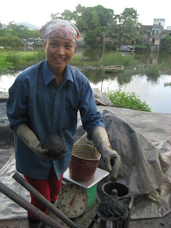 "Ms. Lien Thị Doãn is only 28 years old, yet she still manages to look younger than her age. She has a 13 year old son and a 5 year old daughter, kind eyes and she smiles frequently. As the breadwinner for her family (her husband is not well), she works every day - weather permitting - making coal blocks.