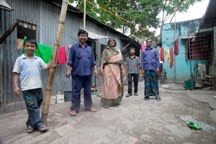 One family we spent a year talking to was a young Bangladeshi couple, Hamid and Khadeja and their young son. They live in a slum in the Bangladeshi capital of Dhaka. Their home consists of cement block walls and a tin roof. They share bathroom and kitchen facilities with eight other families.